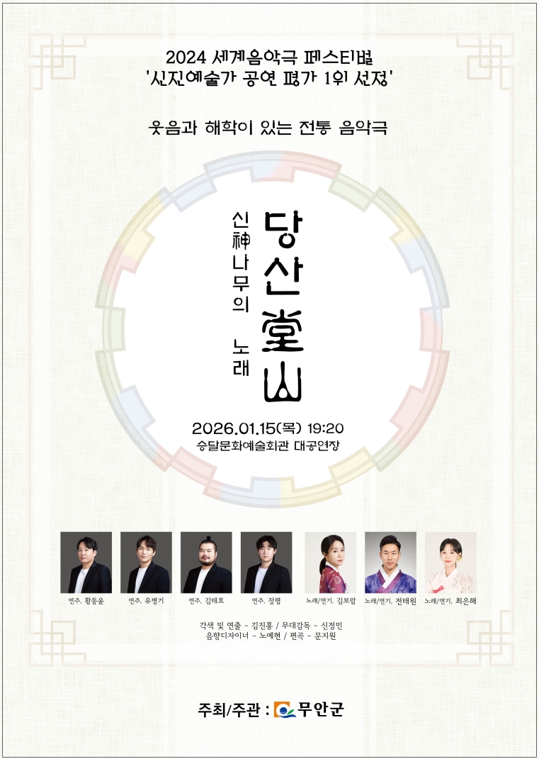 무안군(군수 김산)은 세계음악극페스티벌에서 신진예술가 부문 1위로 선정된 전통음악극 ‘당산’을 오는 1월 15일 오후 7시 20분, 승달문화예술회관 대공연장에서 선보인다고 밝혔다.