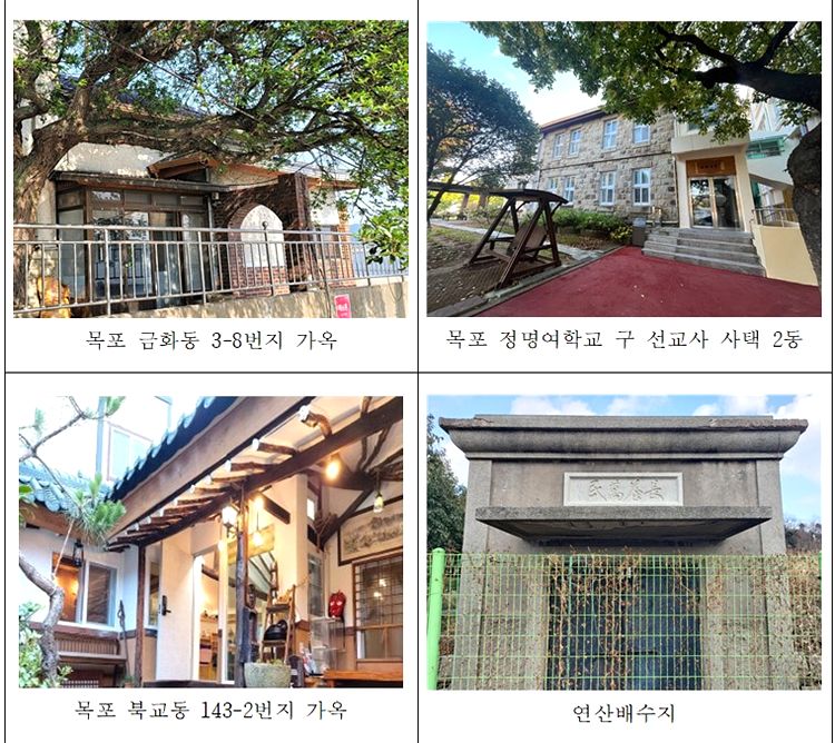 이번에 지정된 향토유산은 ▲목포 금화동 3-8번지 가옥 ▲목포 정명여학교 구 선교사 사택 2동 ▲목포 북교동 143-2번지 가옥 ▲연산배수지 등 총 4건으로, 주거·교육·도시기반시설 등 다양한 분야의 근현대 유산이 고루 포함됐다.